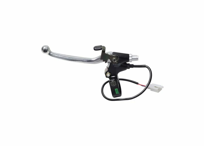 The locking 2-wire brake lever for electric scooters from Wuxing features a polished metal handle and a 13″ two-wire connector