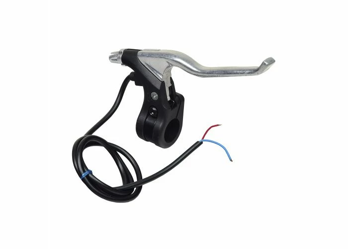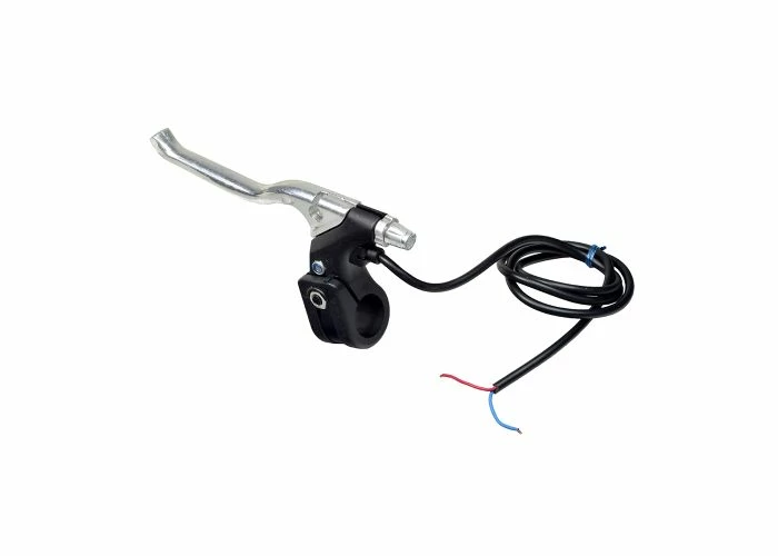 Brake lever for recreational scooters, with polished aluminum handle, wires, and built-in return spring