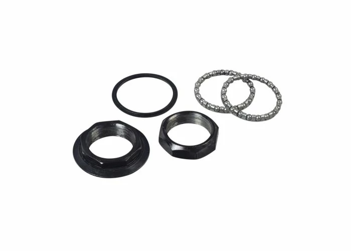 The replacement headset fork bearing kit for the GOTRAX GKS electric scooter is a 5-piece set with two 1-9/16″ diameter ring bearings to allow the handlebar assembly and front wheel fork to pivot smoothly in the frame