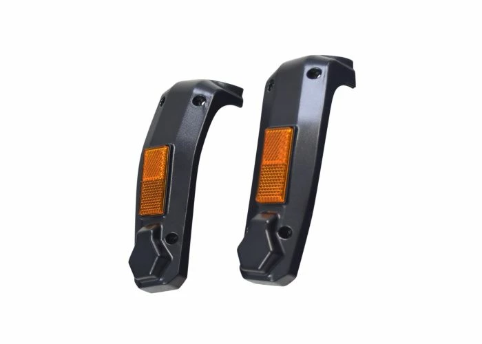 These covers are made of hard black ABS plastic and come with pre-installed orange reflectors