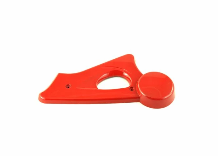 The rear left fork cover for the Baja BE500 electric scooter comes in a rich red finish
